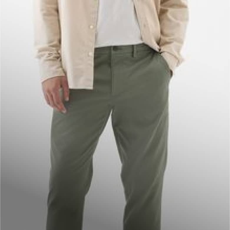 Wearing chinos for work with a white shirt and a blazer creates an instant professional outfit. If you want to layer up for the colder weather, add a zipped hoodie or lightweight sweater. Any jackets or coats look great with men’s chinos, just avoid any clashing colours. For a more relaxed finish, pair your chinos with a plain cotton t-shirt. Complete the look with a pair of smart shoes or Chelsea boots.