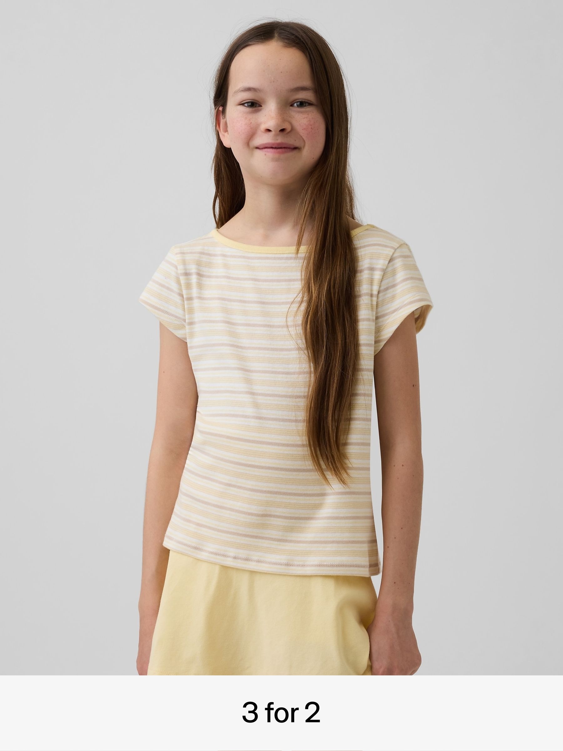 Step into the limelight with girls yellow tops and t-shirts. From formal school events or casual birthday parties, all-over print, assorted graphics at the front or subtle plain yellow tops add a touch of positivity to any occasion. Team it with shorts or a skirt for an ideal fit.Featuring patterns from crew neck flutter to short sleeves, our yellow t-shirt collection is timeless. Versatile and breathable embrace wardrobe staples that will make your little ones look extra adorable.