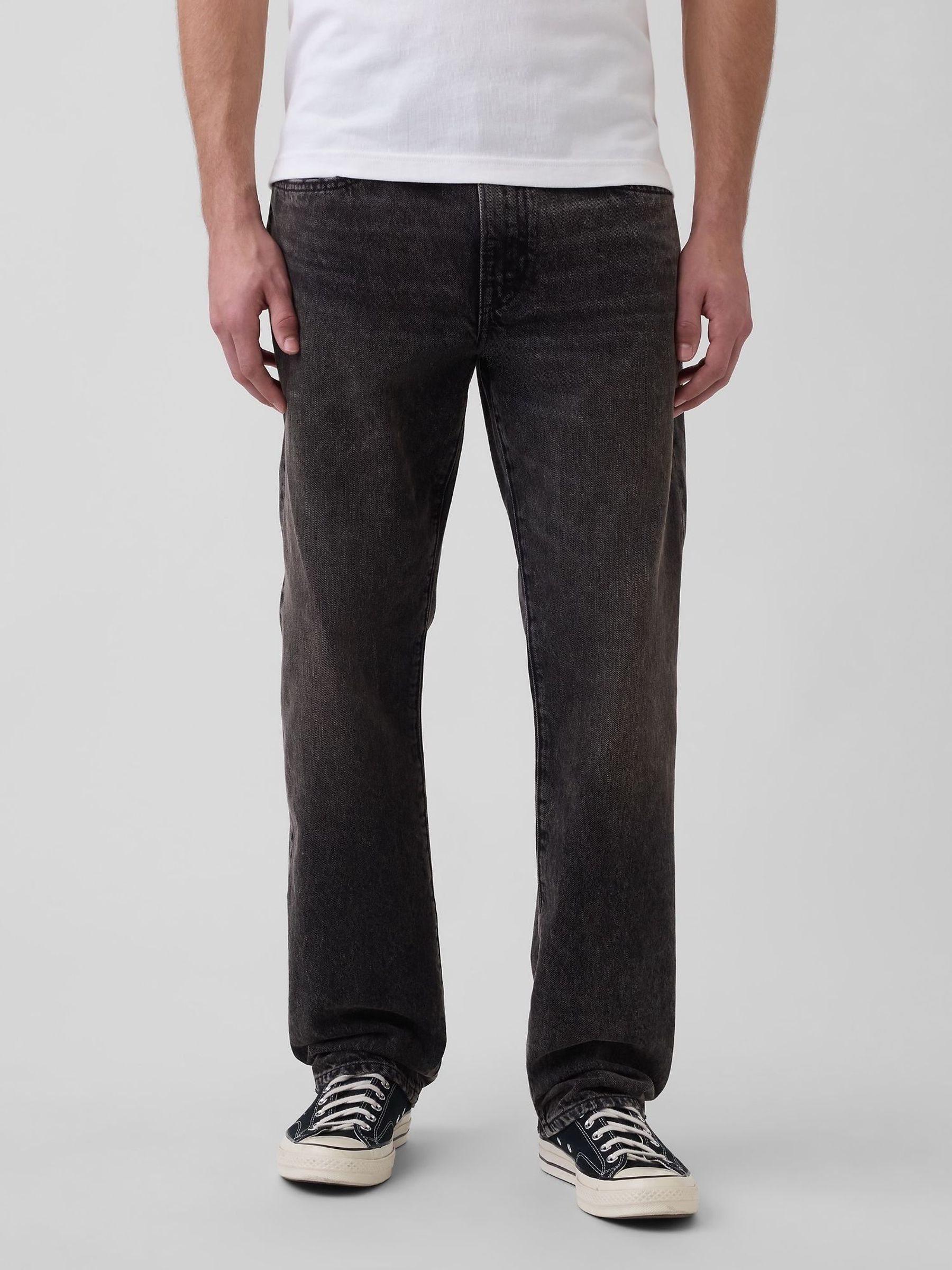 Create everyday, effortless looks with our men’s straight jeans. Comfortable and classic, our straight-leg jeans for men are perfect for casual days, work days or for wearing at the weekend, too. Anything goes. Our men's jeans from Gap offer a fit for everyone. Discover straight leg jeans in twill or corduroy fabrics, as well as our bestselling blue denim stretch jeans. Available in waist sizes from 28-40 inches, you can find the ideal fit for you. Our men's slim fit jeans and men's skinny jeans offer slimmer options for when you may require a more tapered cut. If you prefer vintage styling, our ‘90s-inspired loose and baggy jeans have a relaxed finish that’s especially popular right now.