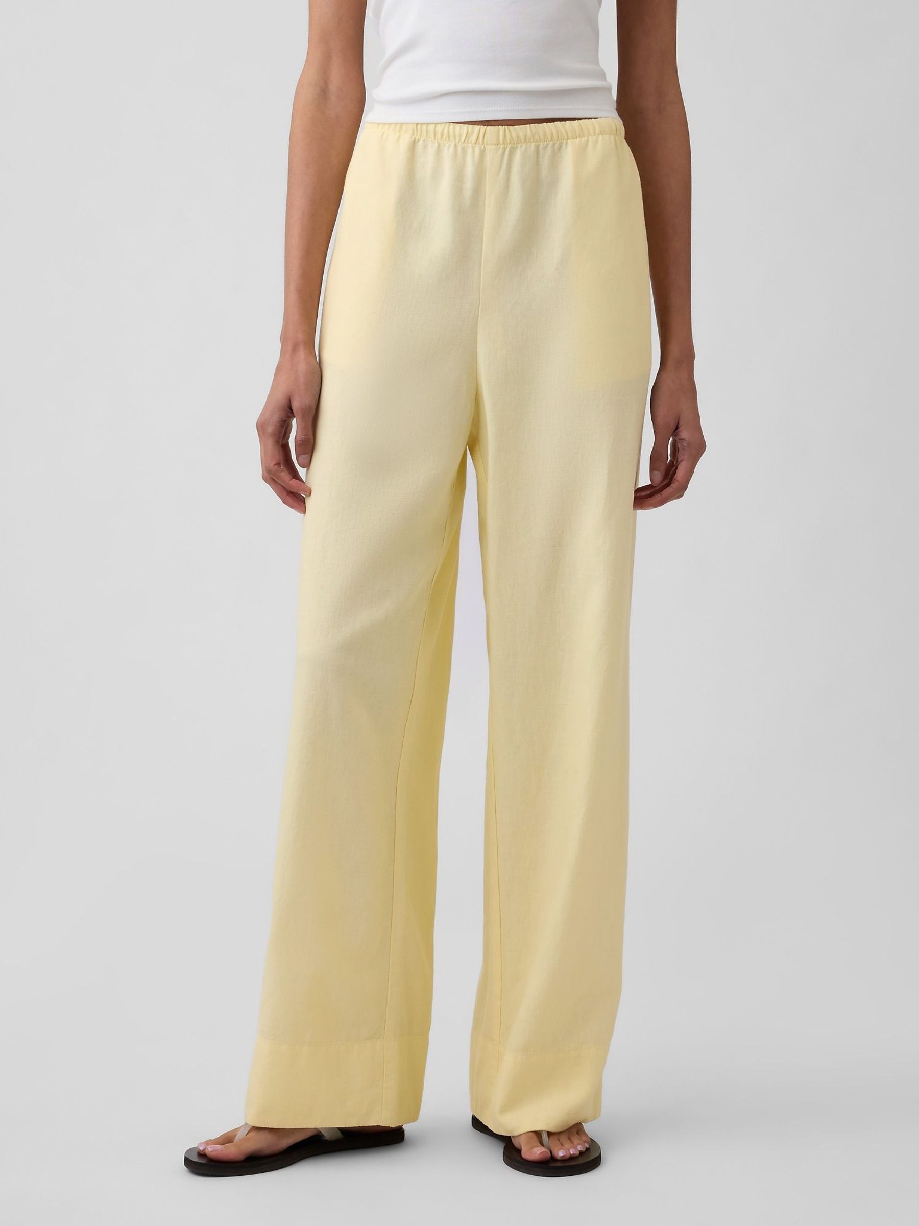 Yellow Linen-Blend Relaxed Wide-Leg Trousers