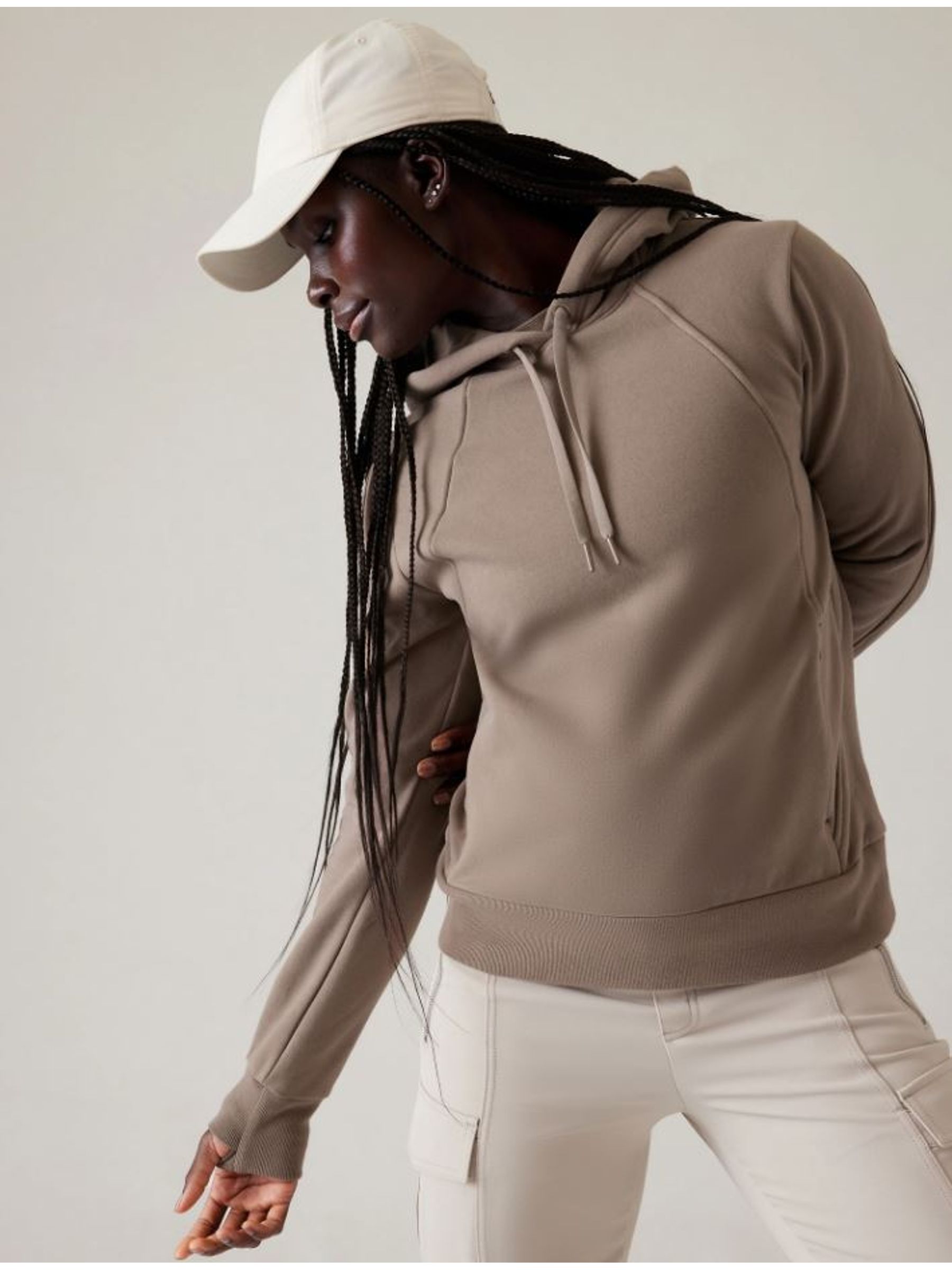 FOR: Commuting work and travel FEEL: Plush stretch fleece has a soft brushed interior FAVE: Fully adjustable continuous drawstring won't get lost in the wash.
