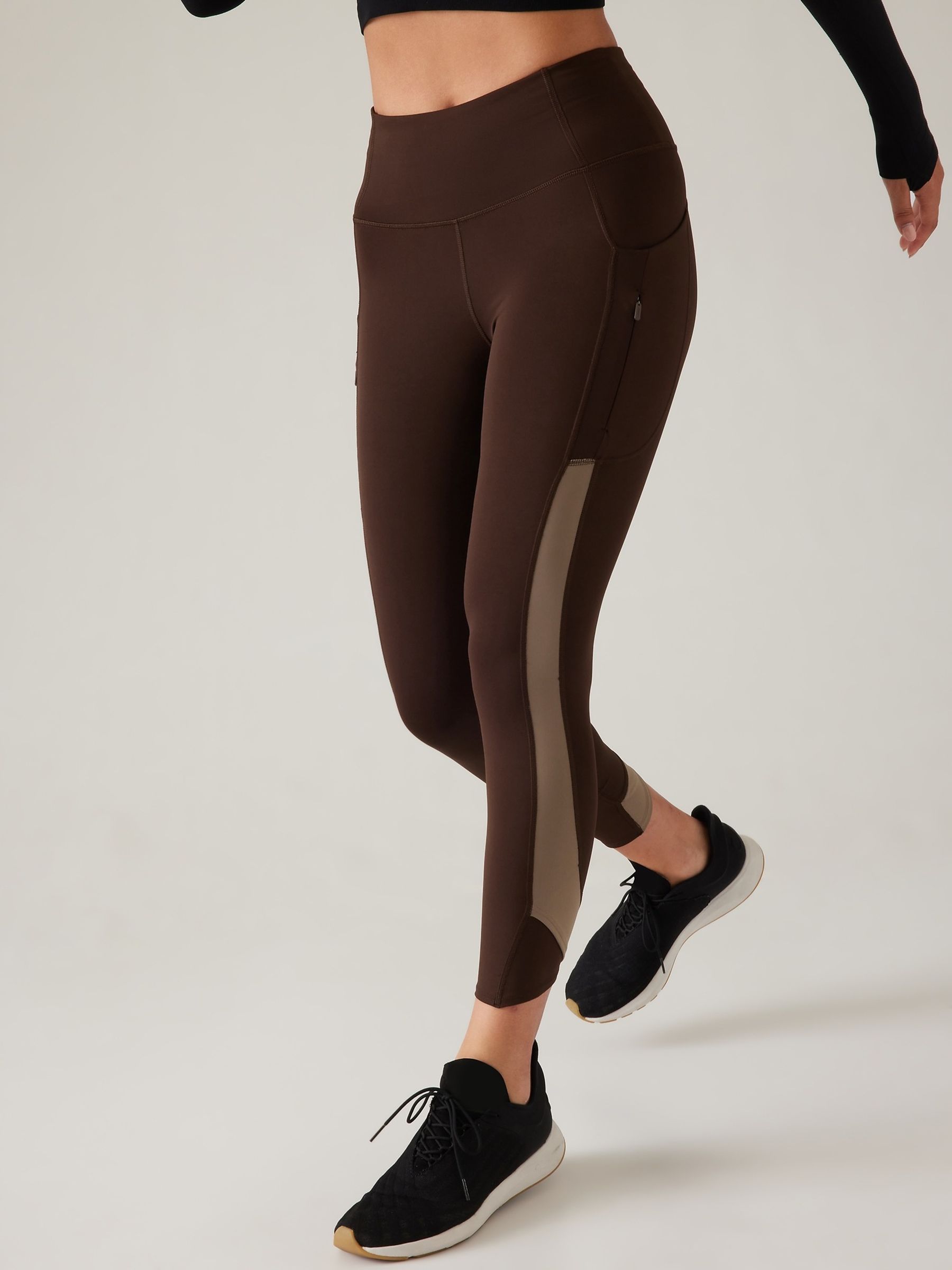 Athleta Brown Ultimate Stash Colourblock 7/8 Leggings