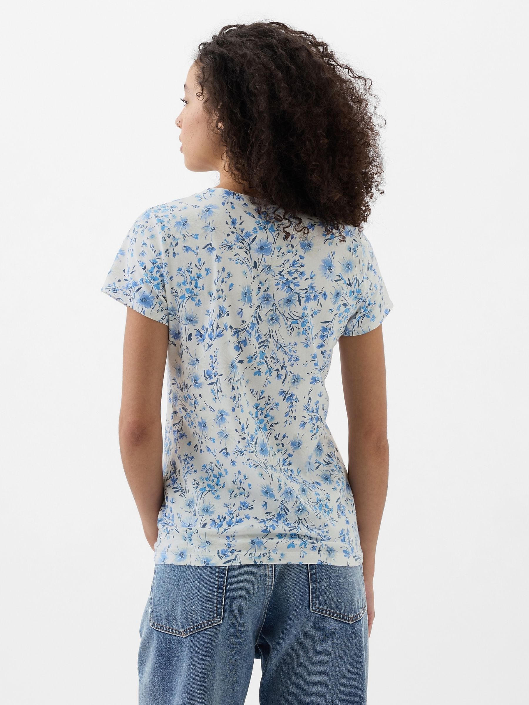 Gap Blue Fitted Floral Logo Short Sleeve Crew Neck T-Shirt. Soft top Short sleeves Crewneck Gap logo at front Select styles have allover print 100% Cotton.