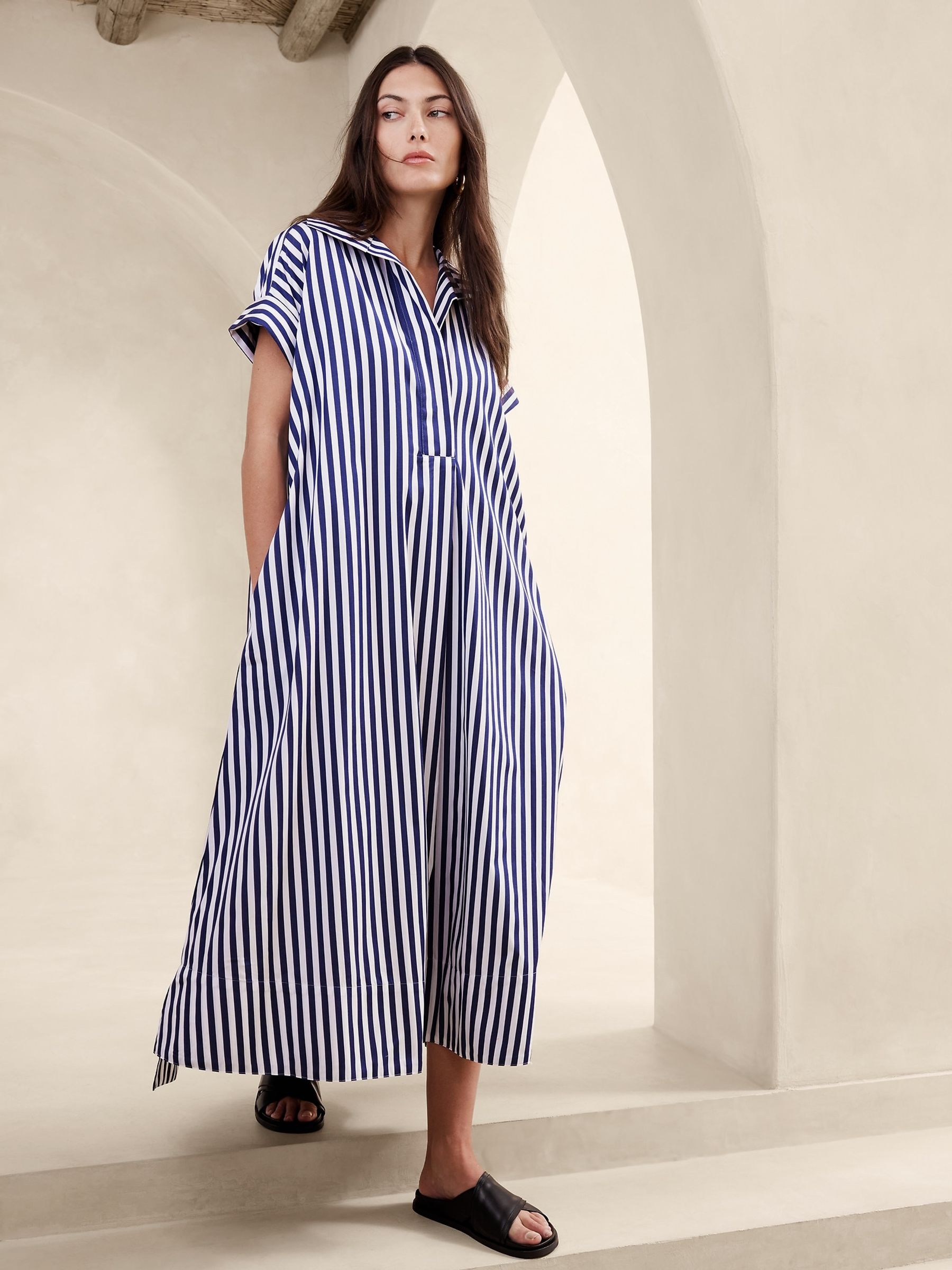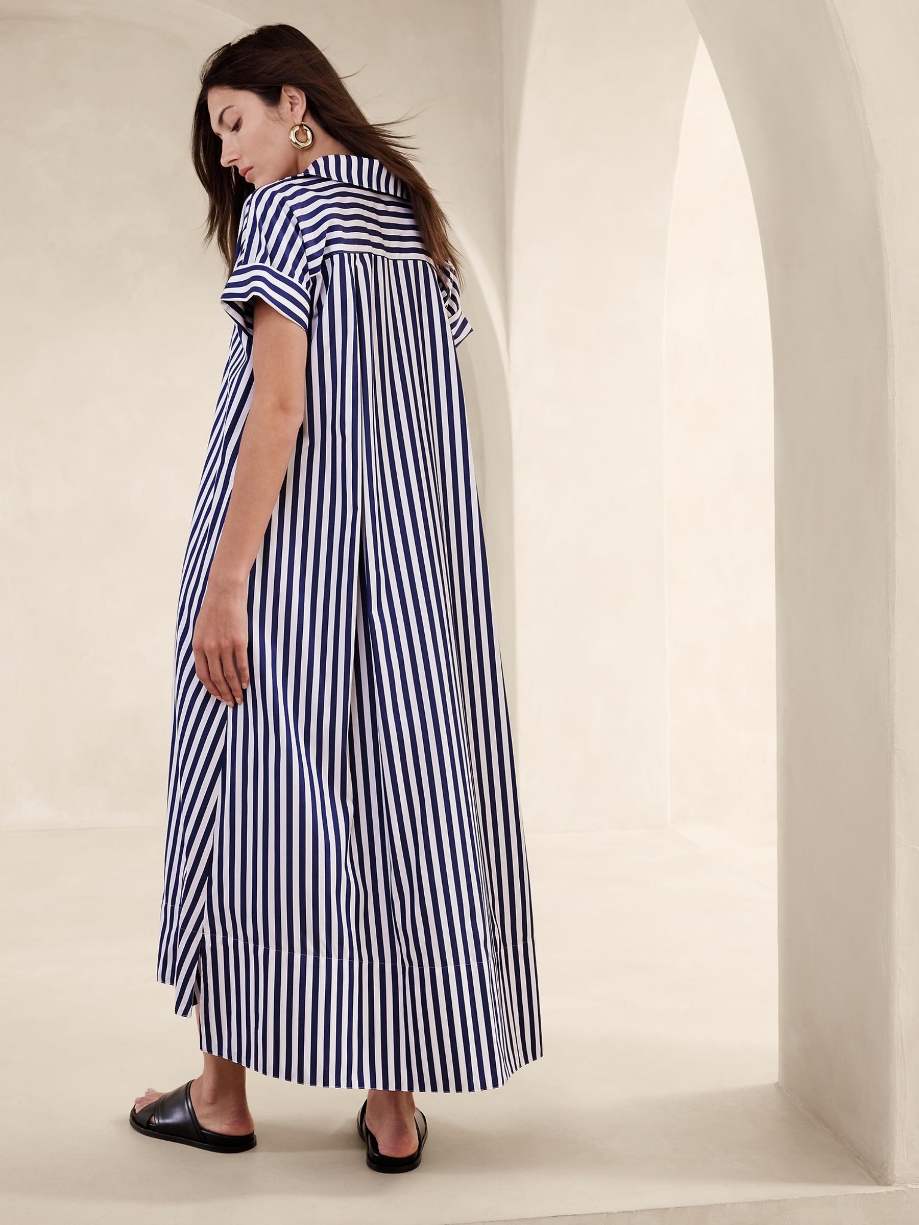 Banana Republic Blue Stripe Cruz Poplin Maxi Dress