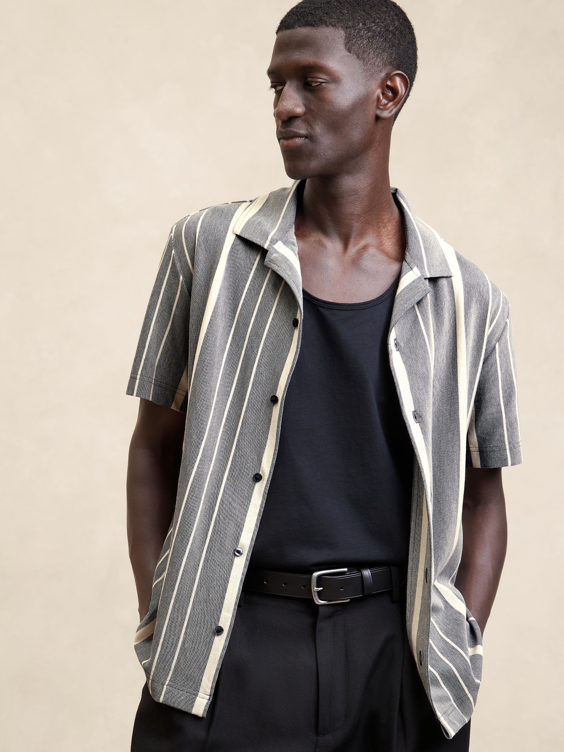 We updated the smart look and soft feel of our best-selling Luxury Touch fabric with a pique knit texture that uses mercerized cotton a special process that results in ultra-smooth fibers for a dressed-up finish. Resort collar with button-front closure Straight hem with side vents 100% Cotton.