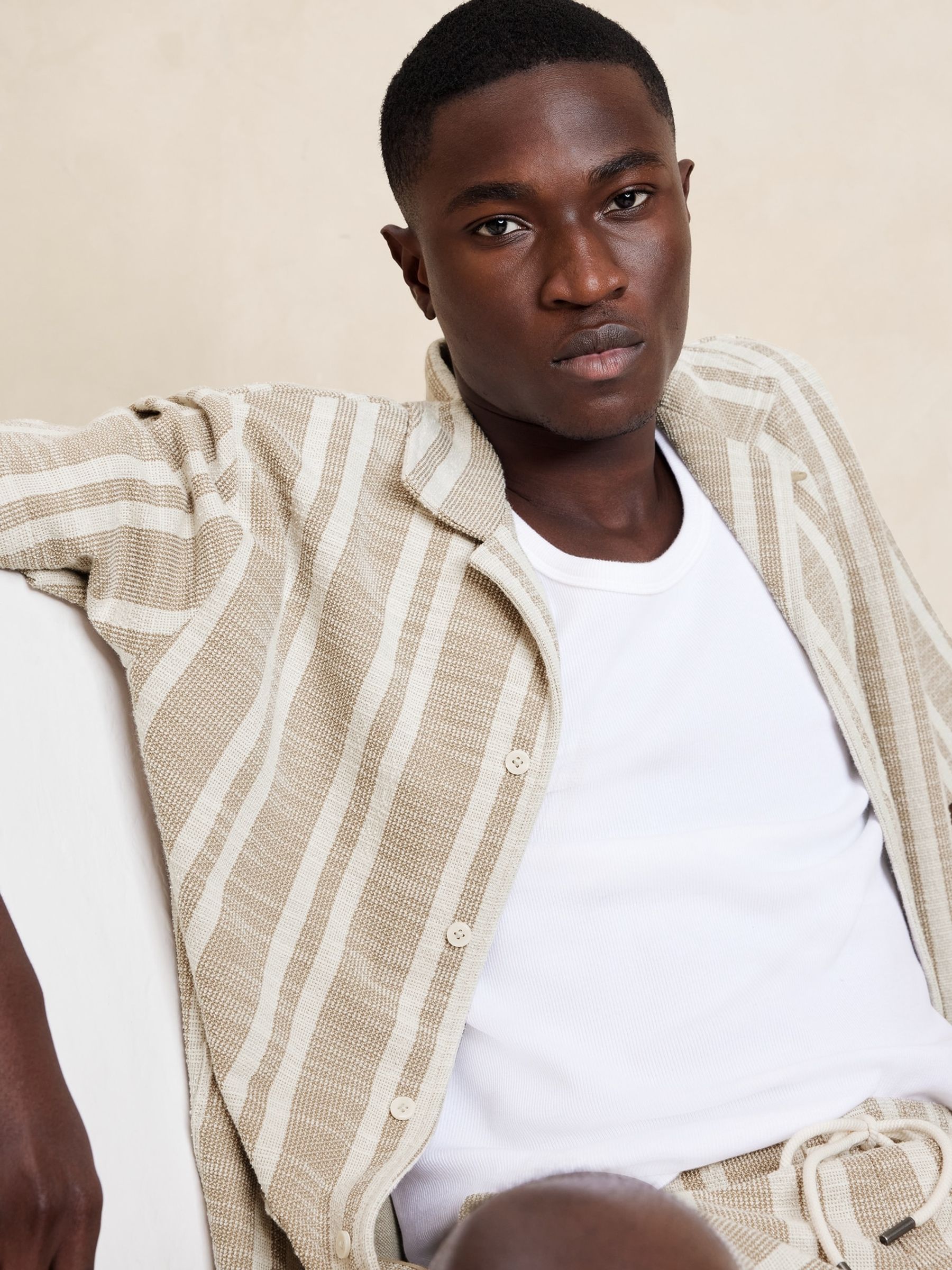 Ideal for warm weather, this resort shirt is cut from a unique jacquard fabric - one we selected for its sweatshirt softness and retro textured look.