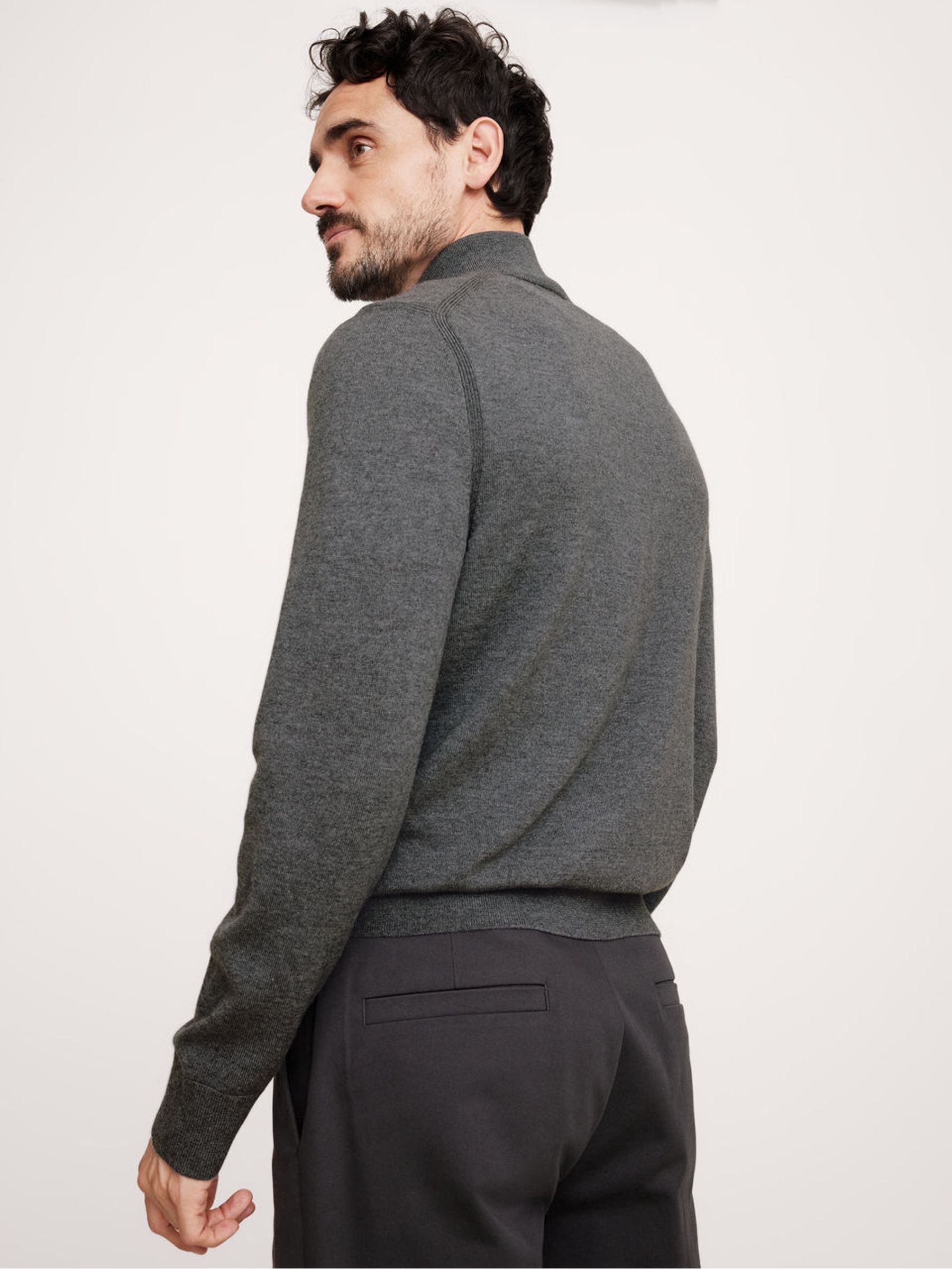 This refined sweater is made from responsibly-sourced Merino wool spun for us in Italy Here we rely on it to create this warm half-zip sweater that's ideal for layering through the coldest 3 seasons Standard fit Responsible Wool Standard Certified: This global standard protects the sheep that supply the wool for this garment, as well as the land they graze, working to make it better for the environment and the sheep Fabric from Italy's Zegna Baruffa mill Half-zip neckline Straight hem 100% Wool.