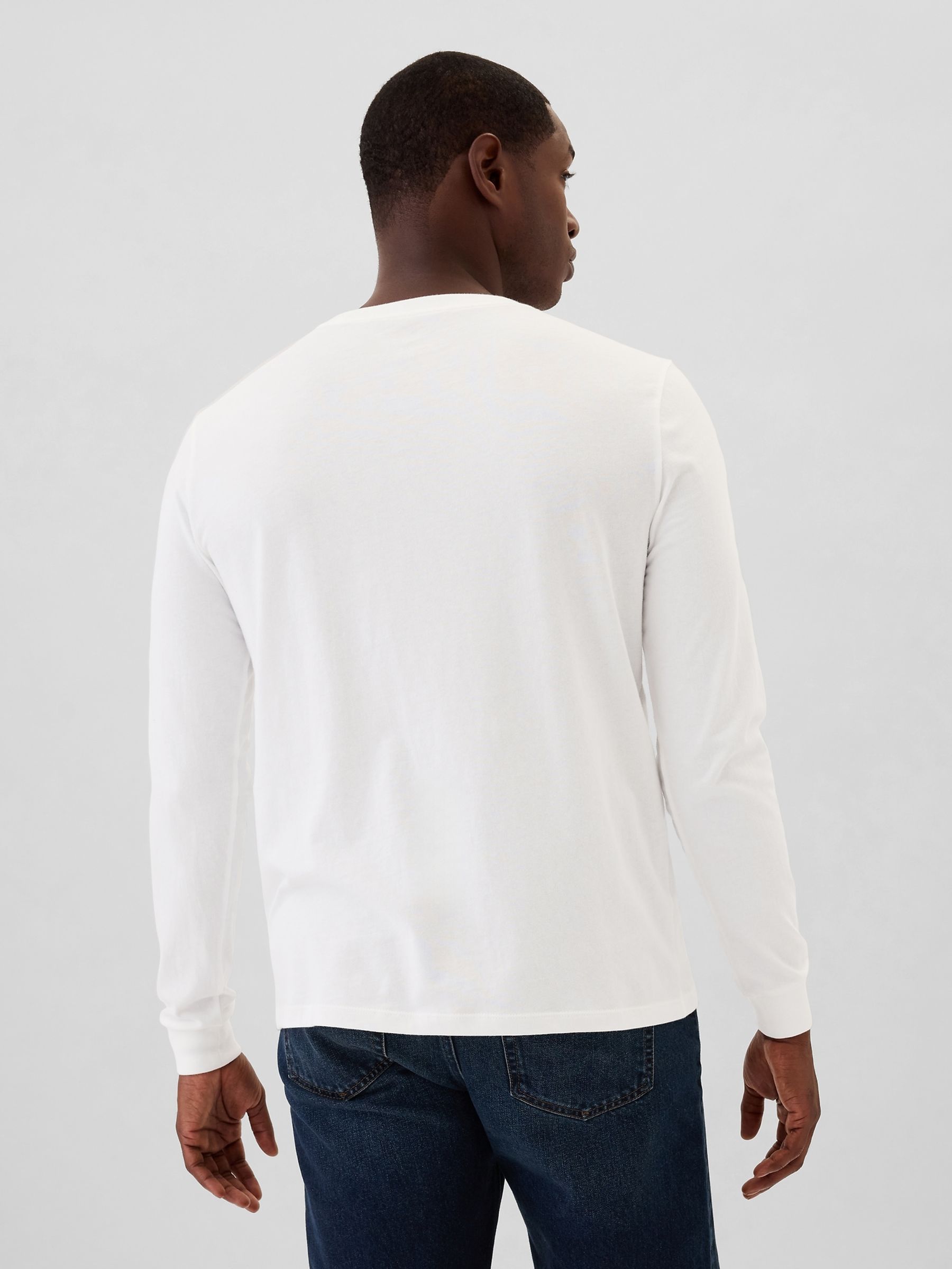 The Everyday is our soft jersey knit, 100% cotton t-shirt, with a straight easy fit that hits at the hip. Available in crew neck in a breadth of colours and logo graphics. Soft knit t-shirt Crew neck Long sleeves with banded cuffs White Straight easy fit Hits at the hip Label free at the back neckline for extra comfort all day long Machine washable. 100% Cotton.