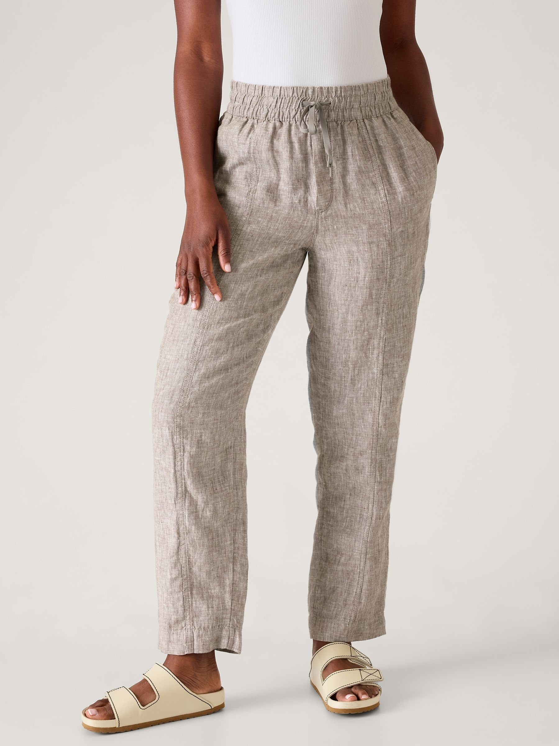 Athleta Beige Retreat Linen Ankle Trousers