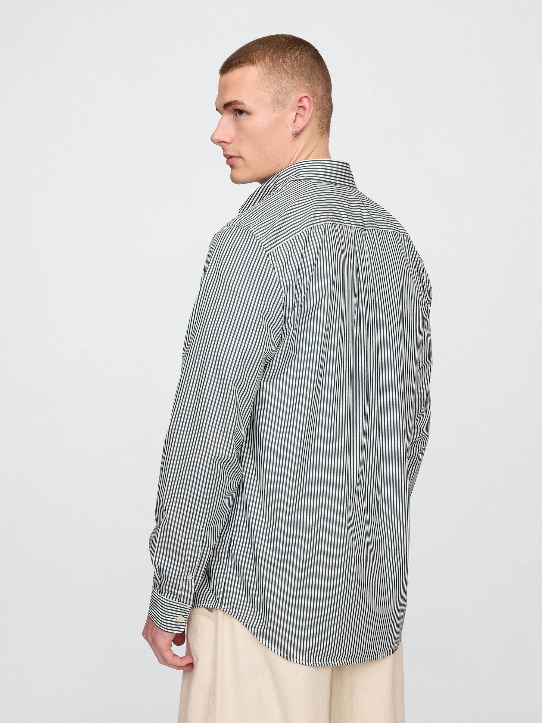 Green Stripe Long Sleeve Poplin Classic Shirt