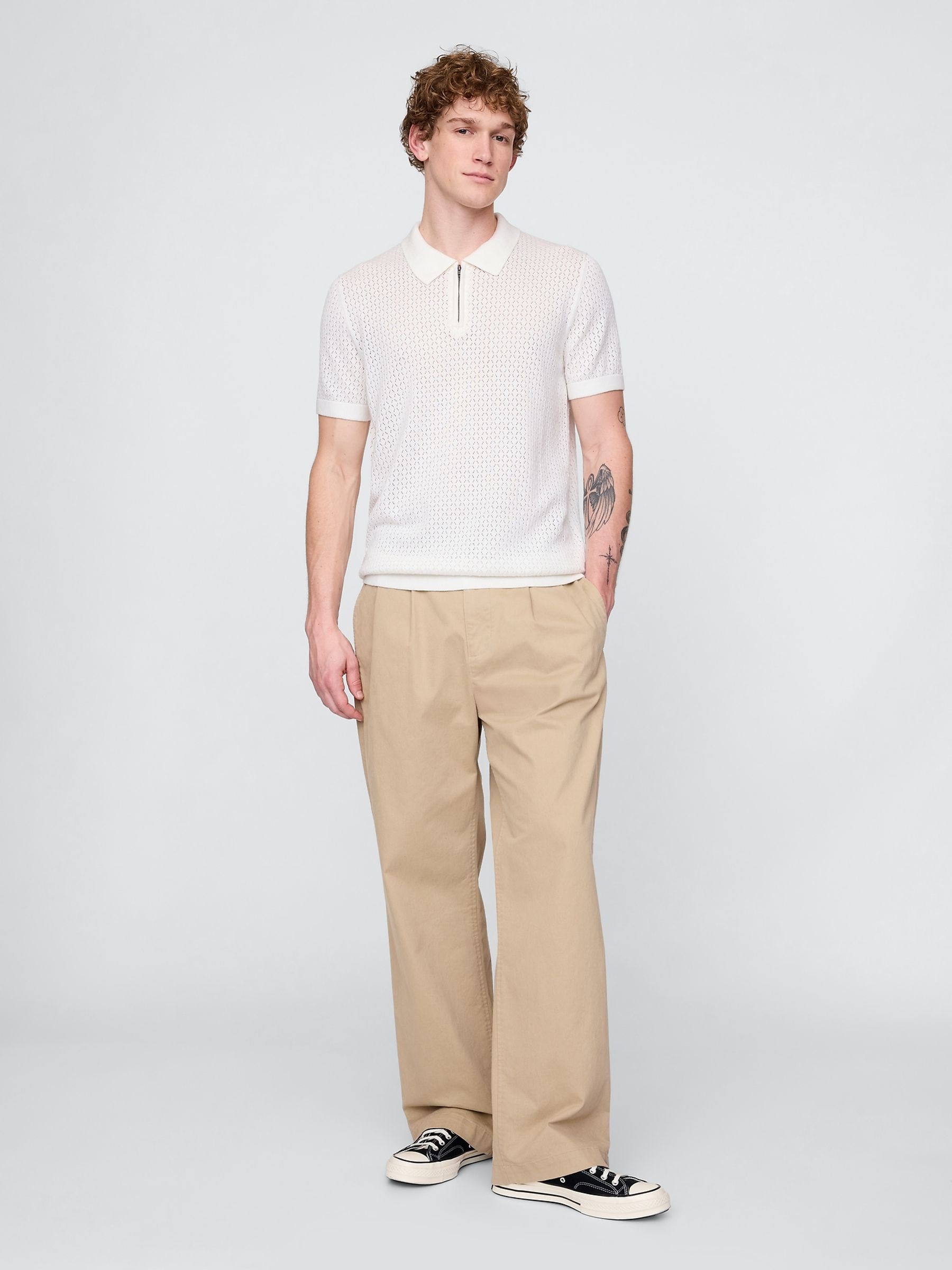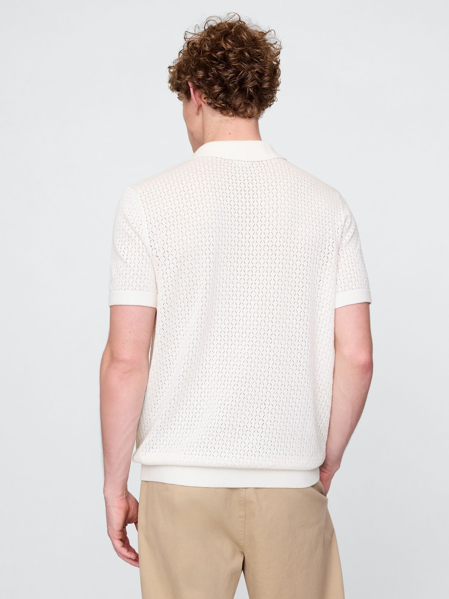 Soft cotton crochet polo. Polo collar with quarter zip closure. Short sleeves. Banded hem. Fit: Classic. A straight and easy fit. Hits at the hip. Models are 6²1³“6²2³ 185 cm“188 cm with a 31³ 79 cm waist and 32“33³ 81 cm“84 cm inseam and are wearing Gap size M.