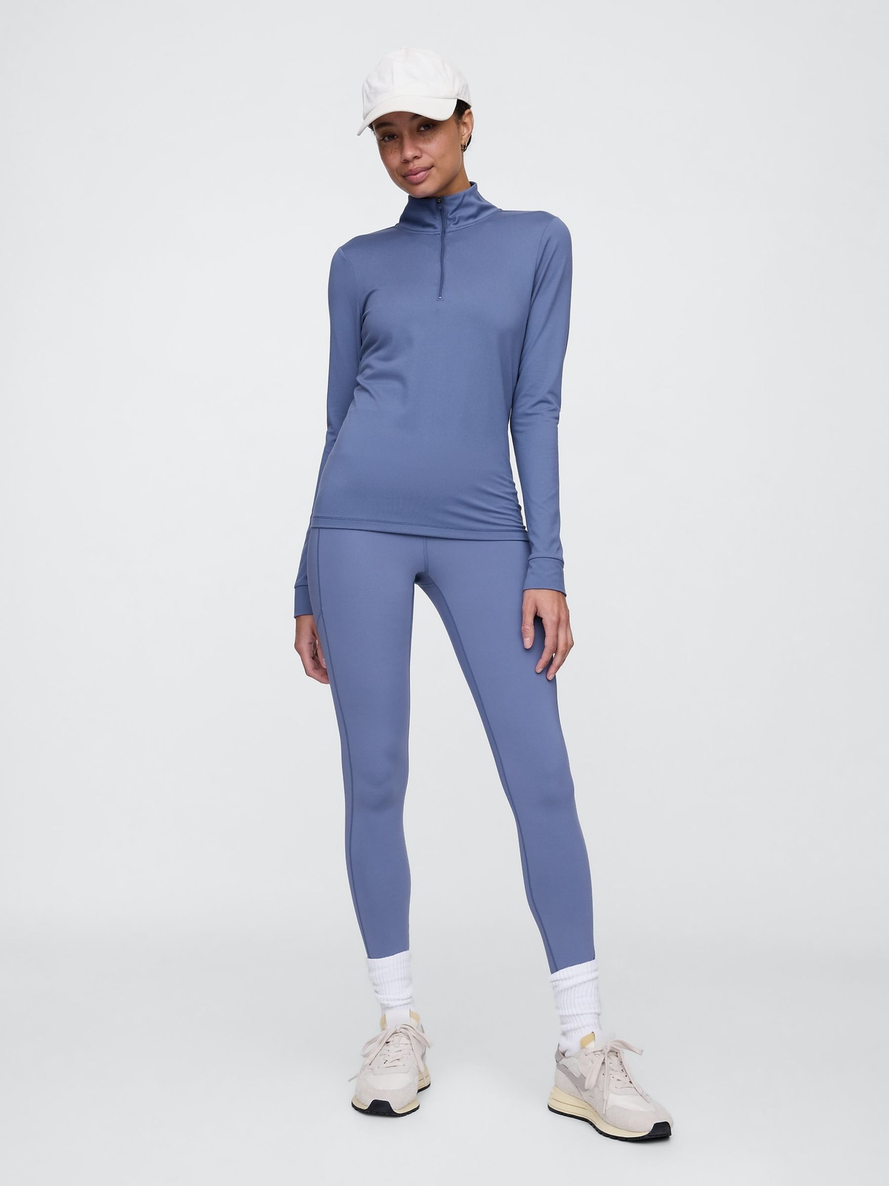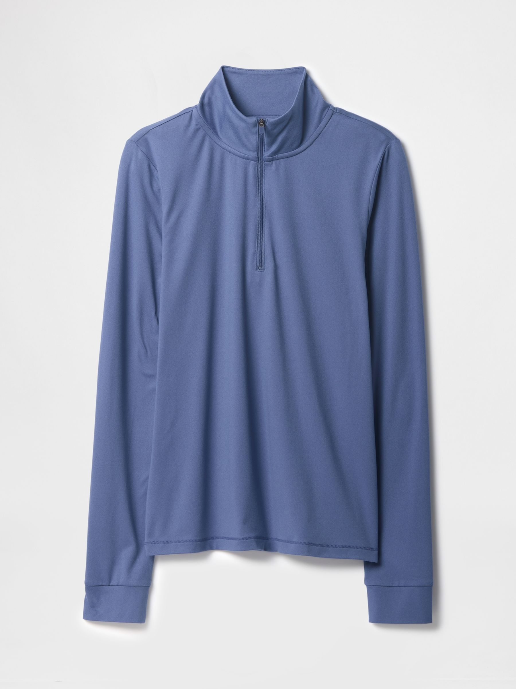 GapFit RangeStylish and comfortable sportswear designed to move with you. Whether you’re going to the gym or heading out. From studio to street, feel confident and ready for anything. Breathable stretch top. Moisture Wicking helps keep your skin dry. Four-way stretch allows freedom of movement while providing superior shape retention. Long sleeves with banded cuffs. Stand collar quarter-zip front. Straight easy fit. Hits at the hip.Four-way stretch Long sleeves Banded cuffs Stand collar Quarter-zip front Hits at the hip Machine washable. 93% Polyester, 7% Elastane.