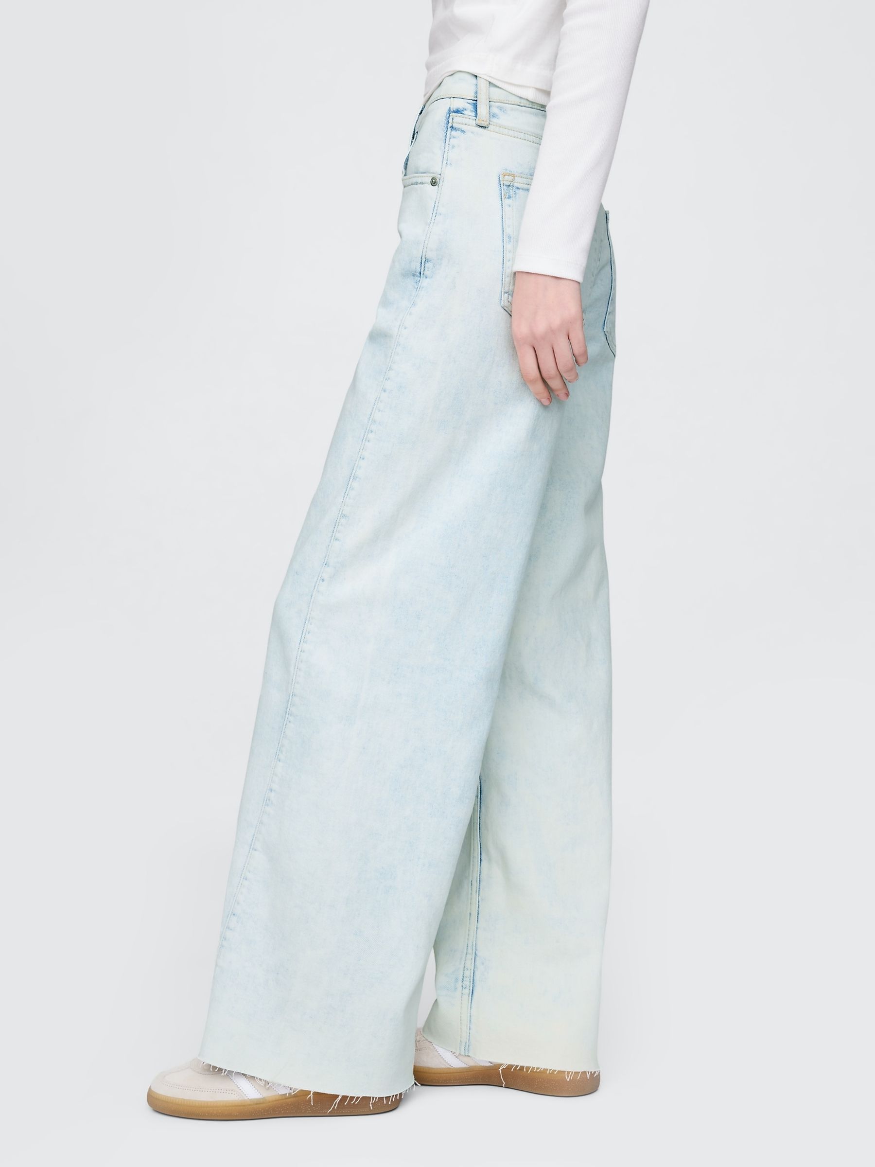 The High Stride is our go-to wide leg jean, designed for ultimate comfort and style. Fitted in the waist and hips with a full length, relaxed wide leg. Our most comfortable authentic denim. Holds you in at the hips and waist but allows ease and movement everywhere else.