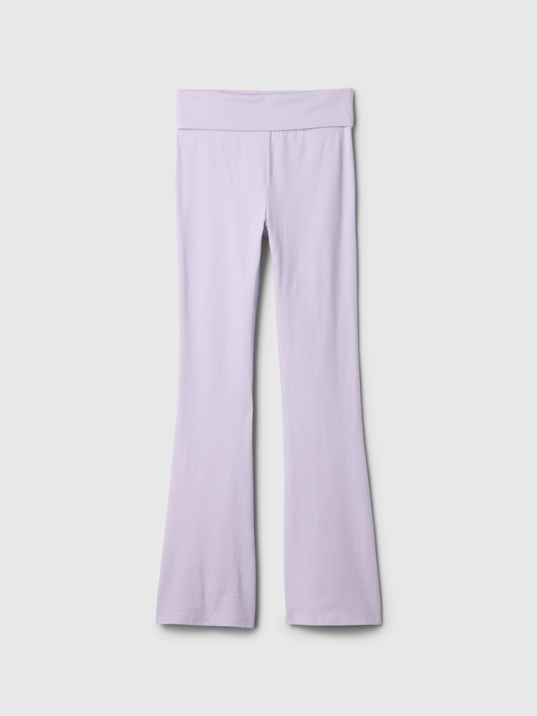 Soft-stretch purple jersey leggings. Wide elasticised waistband. Certain styles have all-over prints or metallic details. This product was made in a factory that invests in gender equality and women's empowerment. Through RISE Reimagining Industry to Support Equality and Gap Inc.'s Programme P.A.C.E. Personal Advancement and Career Enhancement, we support people who make our clothes to build the skills, knowledge, confidence and resilience needed to advance in work and life. Learn more here. Fit: Stretch-to-Fit A legging silhouette that hugs the waist, hip and thigh Flared leg Machine washable. 96% Cotton, 4% Elastane.
