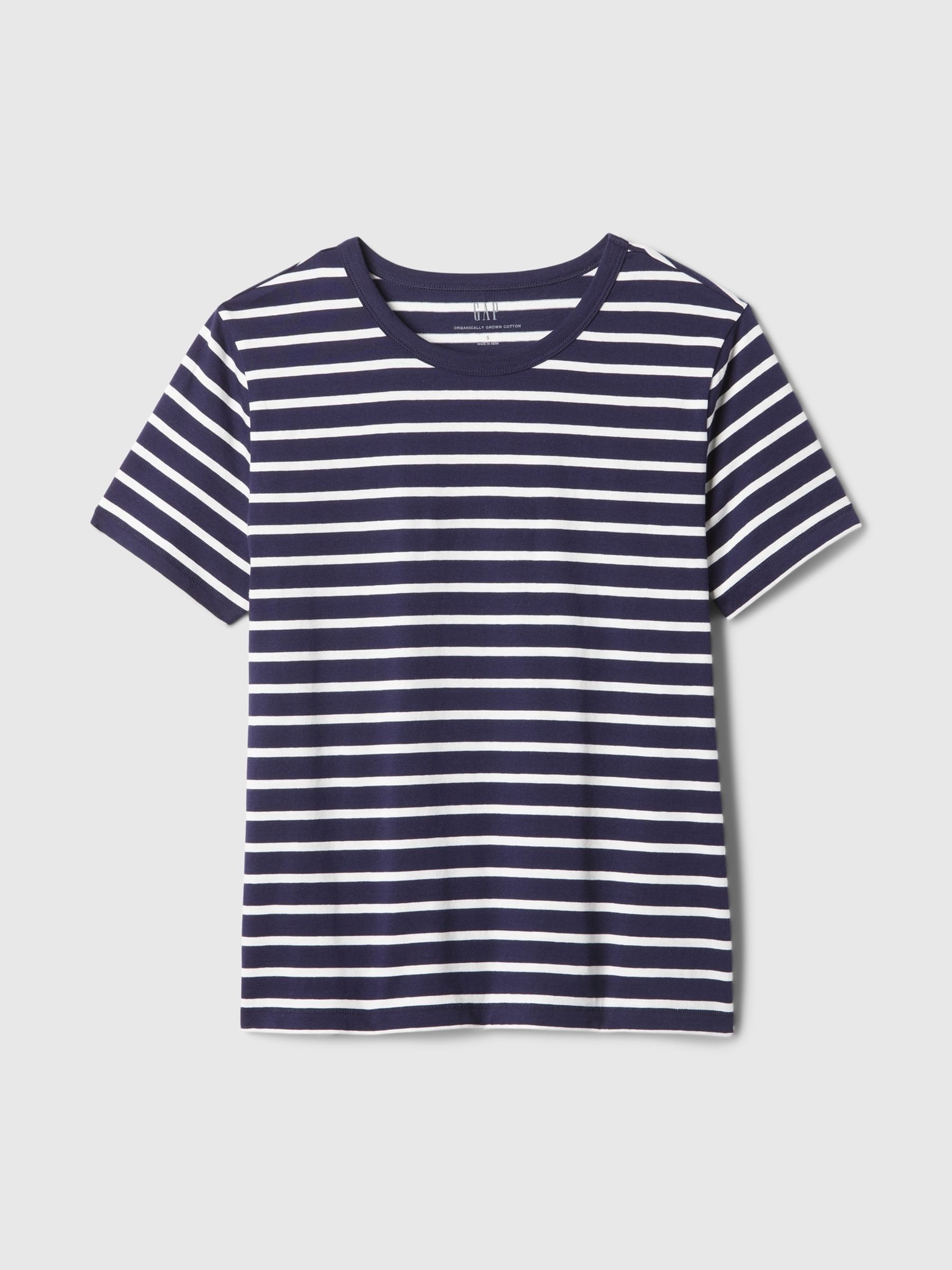Blue Stripe Crew Neck Vintage Short Sleeve T-Shirt