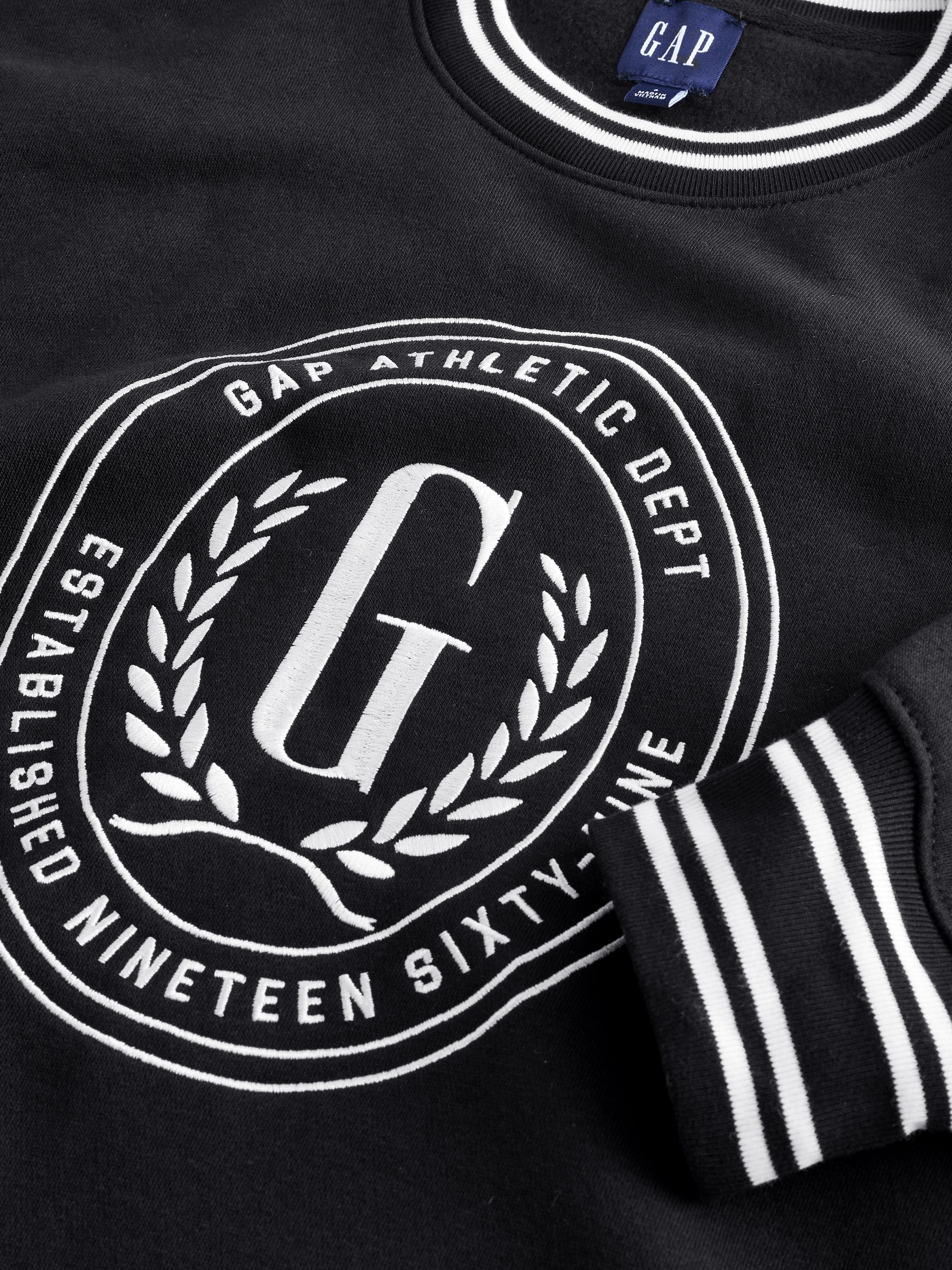 Our softer-than-soft sweats, brushed on the inside and smooth on the outside. Made so that no two are alike. Soft cotton-blend fleece sweatshirt in an oversized fit, with a crew neck and contrast stripes. Long sleeves with banded, striped cuffs. Athletic logo crest at the front. Banded hem.